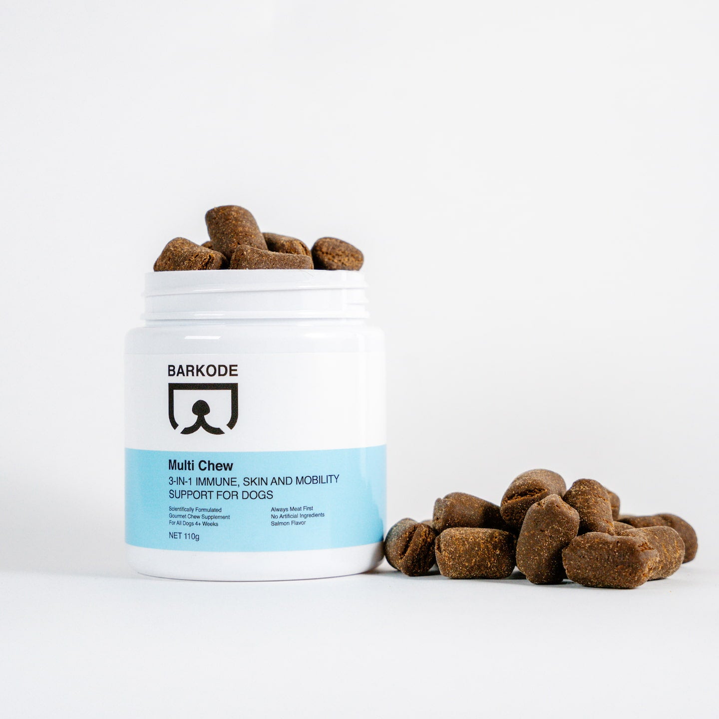 Jako pierwsze powstały miękkie gryzaki Multi Chew, które wspierają układ odpornościowy, zdrową florę jelitową, trawienie, a także pomagają w walce z problemami takimi jak swędzenie, problemy skórne i wypadanie sierści.